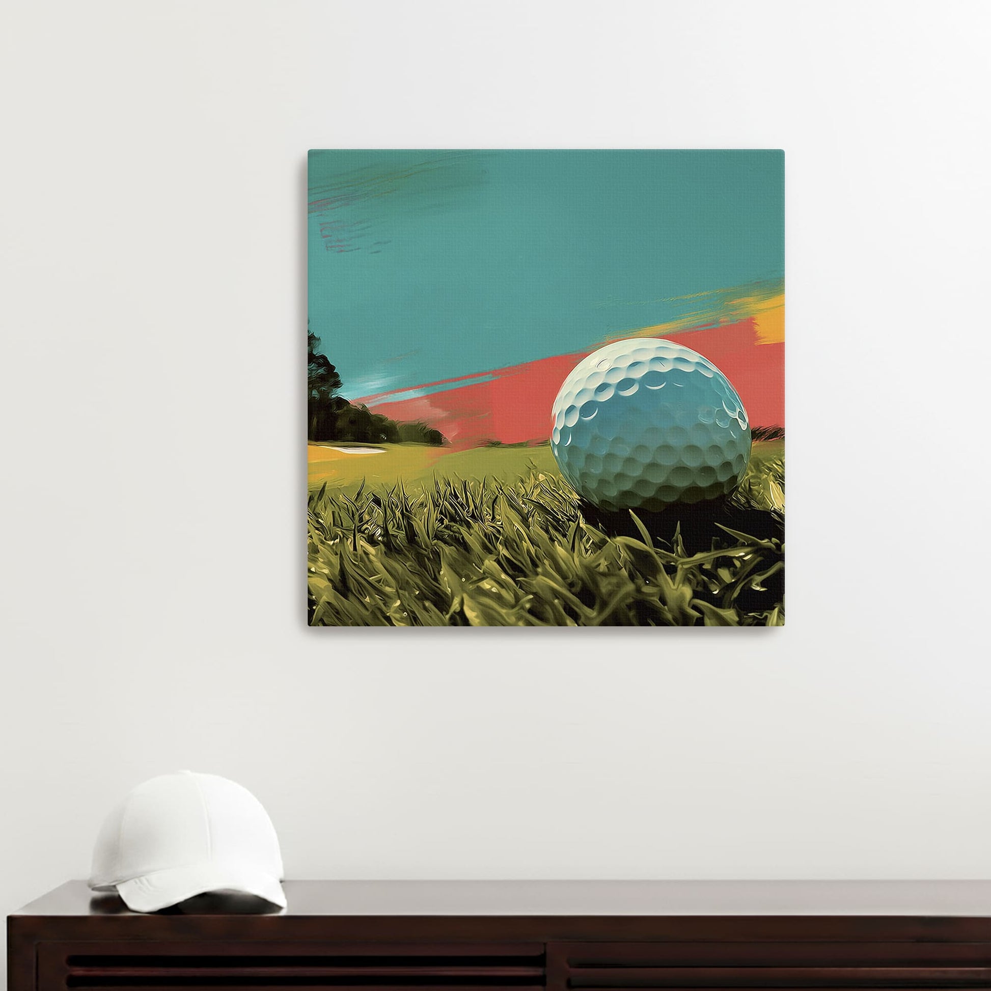 Is this a good lie or have you overshot the fairway? The ball sits between those two worlds, My lie brings texture, balance, and a bit of mystery to your room.